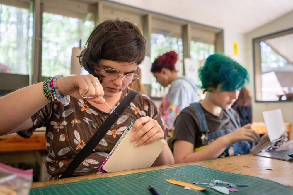 I design learning environments where experimentation feels safe and encouraged. At Buck’s Rock, I’ve seen that when learners know mixed results won’t be judged, they take greater creative risks. I emphasize exploration and reflection over polished outcomes, valuing process as a site of learning. In longer artist’s book projects, for example, I guide learners through reflective discussion about how their ideas evolve, how materials behave, and how intended meaning and perceived meaning shifts through revision. This process-centered approach helps them build confidence, persistence, and a love of making. Learners leave the space more willing to trust their instincts and try something new.