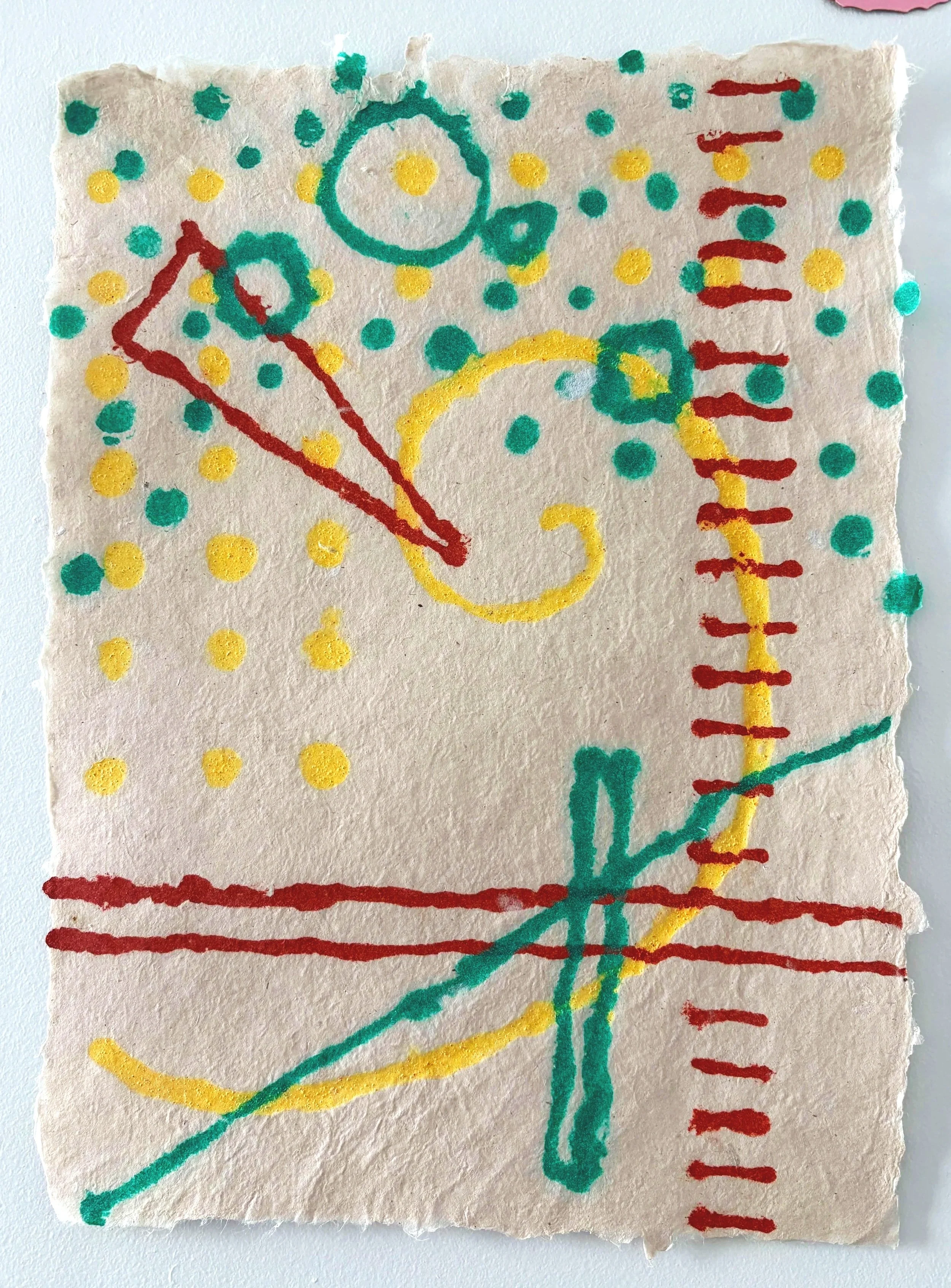Create with pulp-painting, the use of pigmented fiber for mark-making.