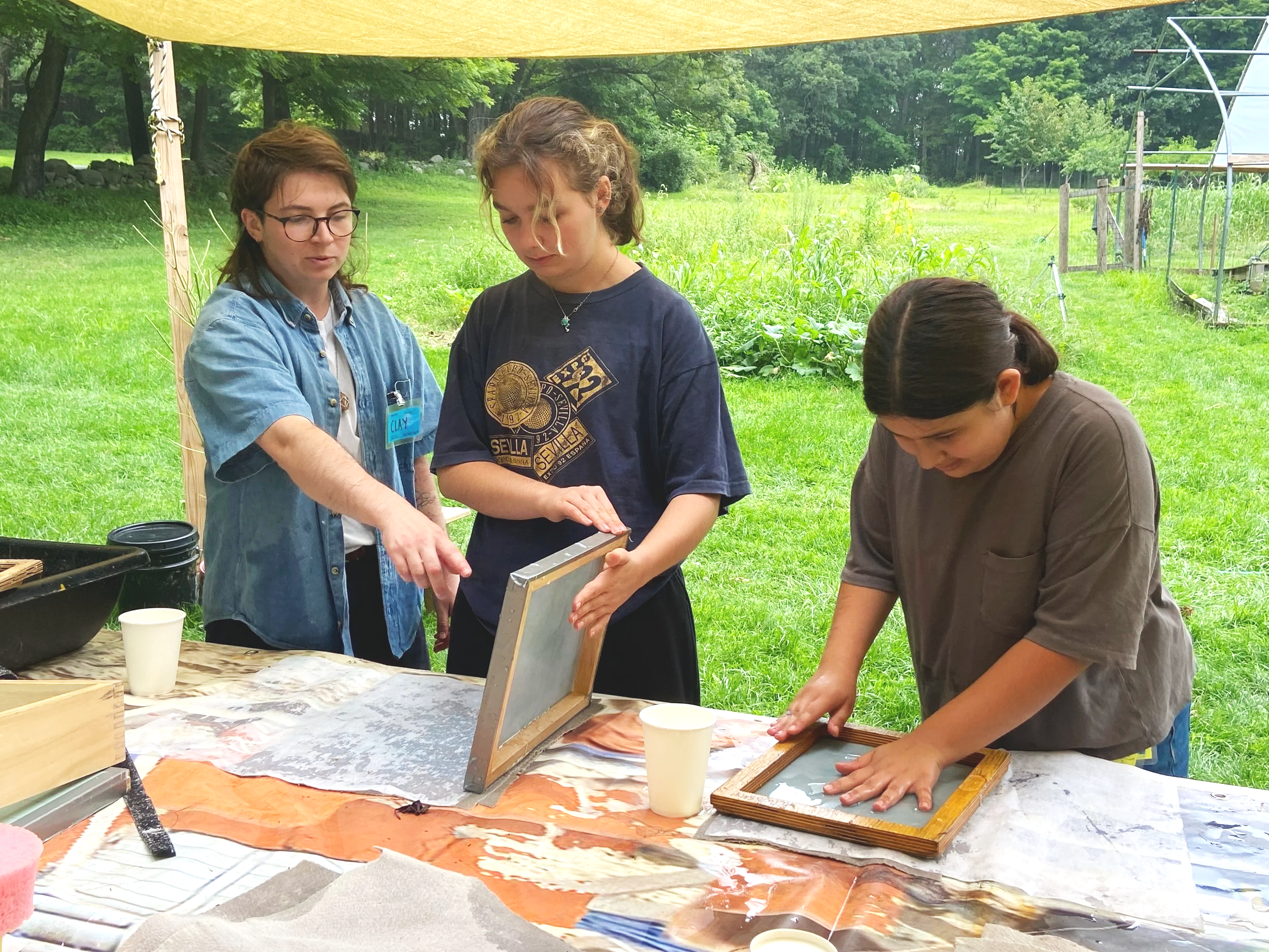 During this series of workshops, learners explored pigmented fiber as a painting material.