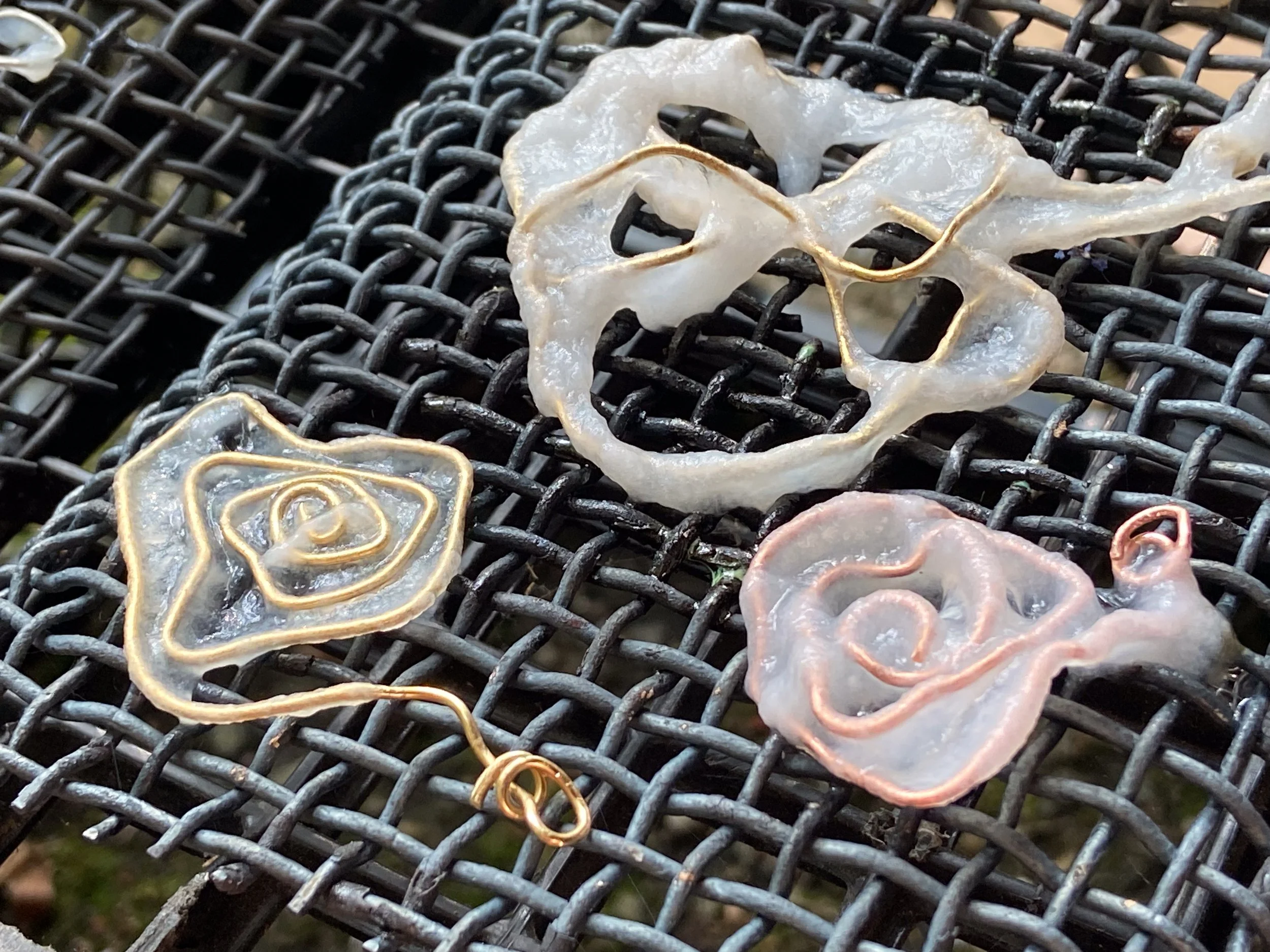 During this workshop, learners created wire forms and dipped them into abaca paper fiber.